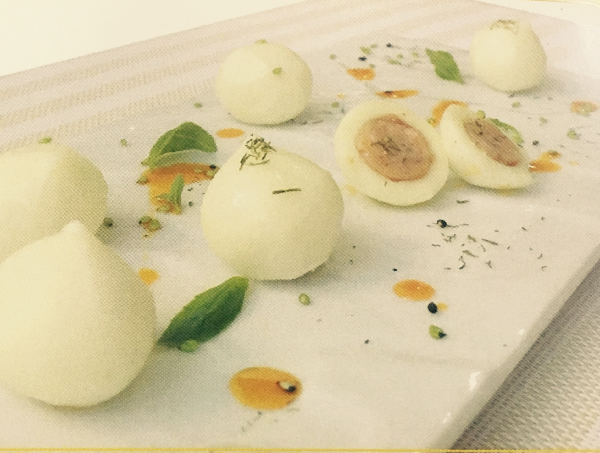 Rodaja de merluza con una guarnición de gulas, gambas y pimientos con una salsa . ¡Un exquisito plato caliente!.